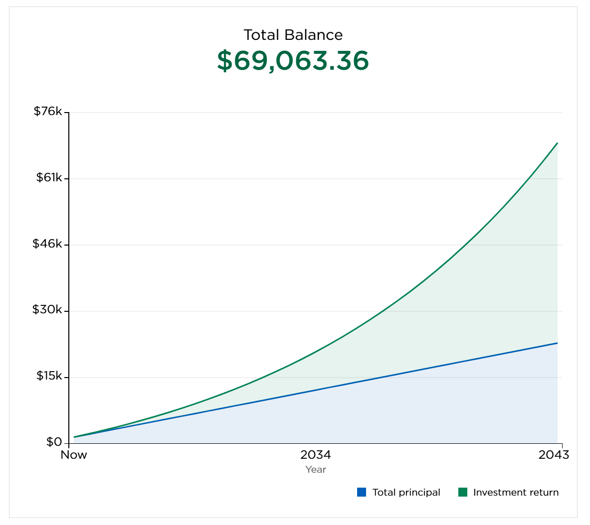 Custodial Brokerage Account - This is just a fancy way of saying an investment account for a minor (a minorrrrrrrr - yes, this is still my entire personality). The earlier you start, the more you can take advantage of compound interest. Let’s say you invest $1,500 to open the account, then invest an additional $100 every month until they’re 18. That’s a total out of pocket of $23,100. If you invest this into a fund similar to the S&P 500 index (which has an average annual return of 10%), by the time your child is 18, they’ll have about $69,000. That’s decent but not totally insane.