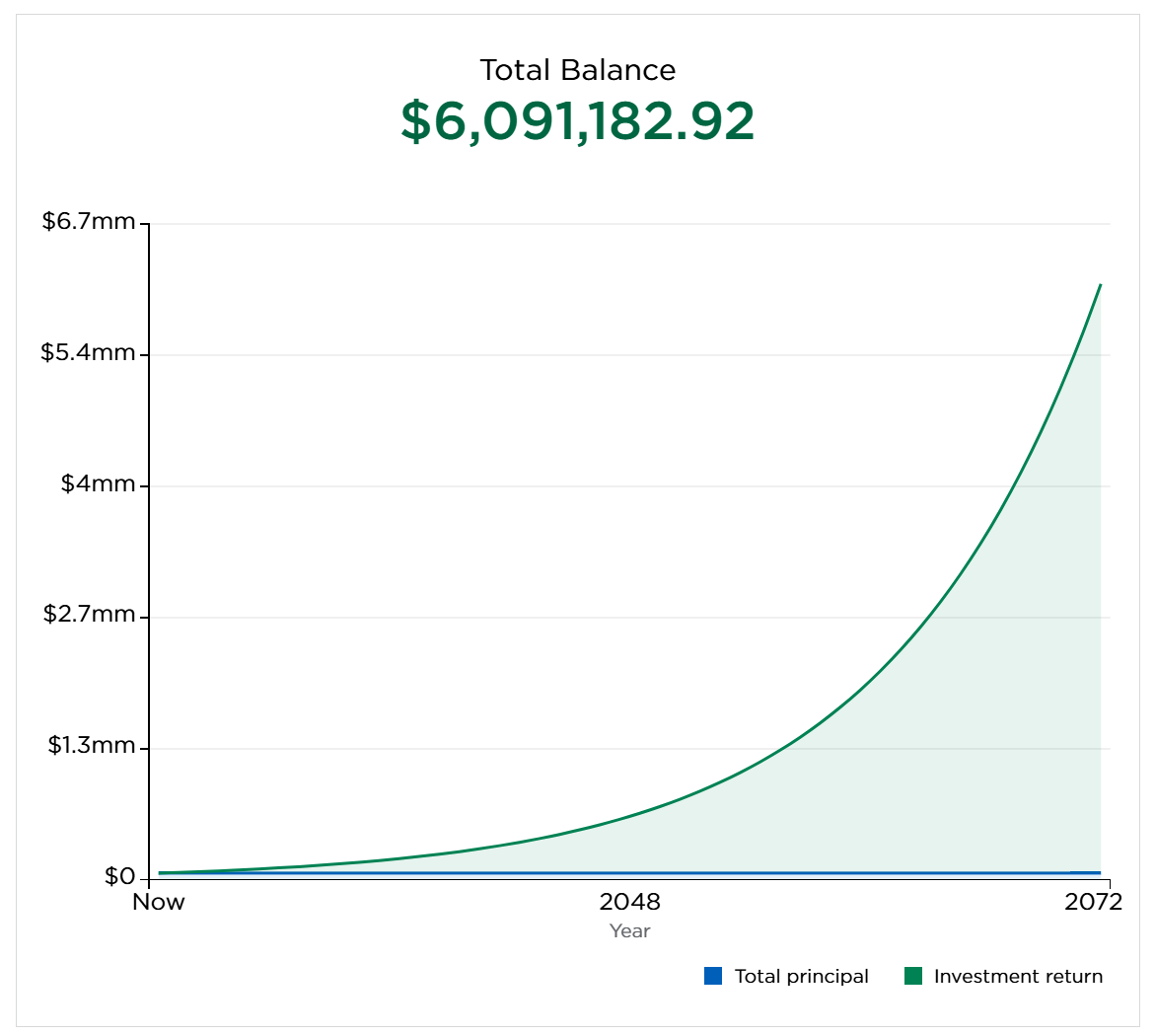 If they hold off on using the money until they retire at 65, they could have about $6.1 million—even if they don’t add another dime after turning 18. All from your $23,100 investment. That’s totally insane. This works for adults too by the way, not just kids!